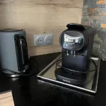 تم تجهيز مكان الإقامة في Anould بالمايكرويف والغلاية الكهربائية وأدوات المطبخ للخدمة الذاتية في منطقة لتناول الطعام في الهواء الطلق.
